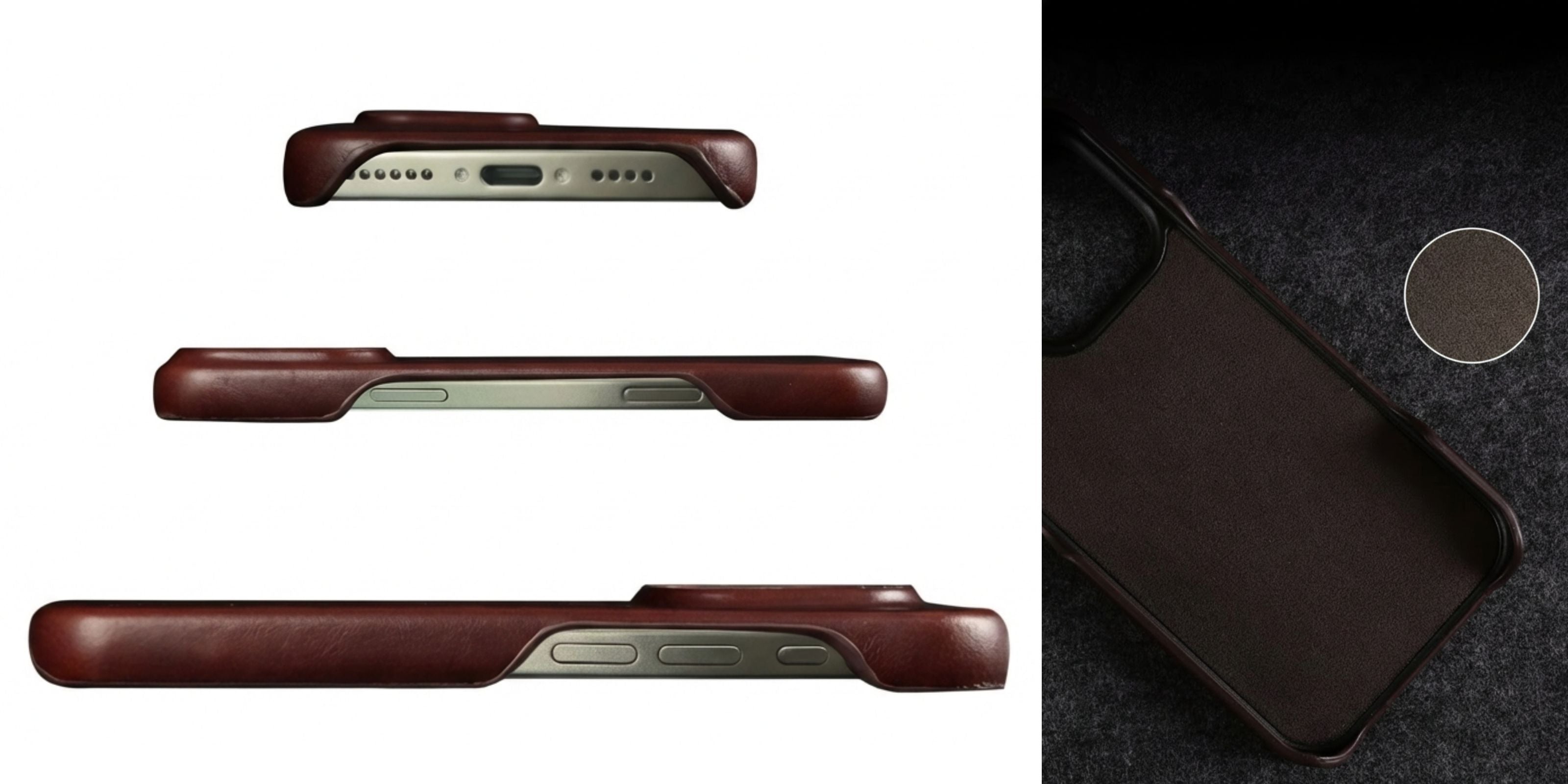 The Inerocase stands apart through its full leather coverage and carefully finished camera edges. Designed for those who appreciate the original feel of their device, it features precision-engineered cutouts that provide direct access to your iPhone’s buttons. This ensures the authentic tactile click you love, while maintaining a slim, sophisticated profile.